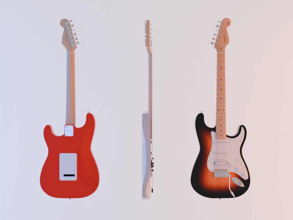 3D modeling project of the legendary Fender Stratocaster guitar despite the fact that I don’t actually own one